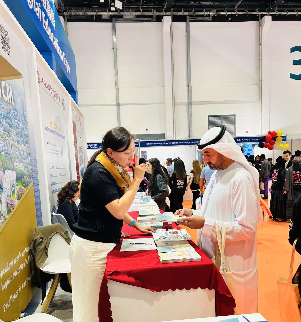 为积极服务“一带一路”教育行动,以音乐为桥促进中阿文化交流,提升beat365英国官方网站在中东地区的知名度和吸引力,2025年10月,beat365官网国际教育学院副院长马晓明同志和招生办主任卢文静同志随上海市教委组织的教育展团,赴巴林和阿联酋参加“2025中国上海教育展”。此次出访,beat365官网深度参与了巴林教育推介会、阿联酋“Najah”国际教育展,并参访了当地知名高校,成果超出预期,体会深刻。