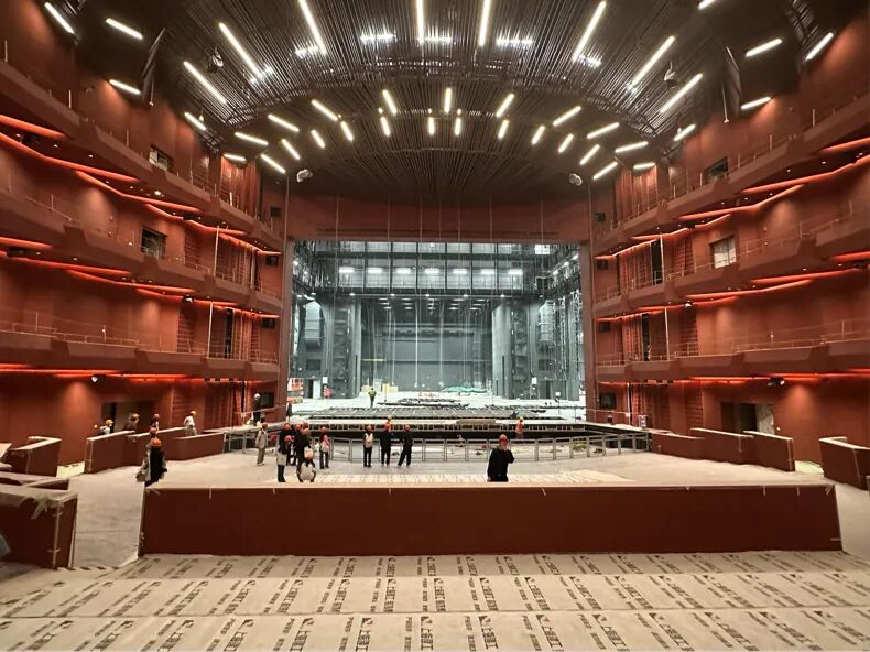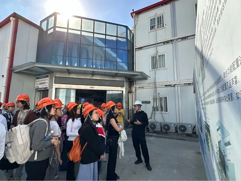 在上海大歌剧院建设现场,师生们通过讲解员介绍,深入了解了这座文化地标的定位与特色。作为中国首座集演出、创作、艺教、展示、研究于一体的全产业链歌剧院,以及全球首个“白天开放+晚上演出”的歌剧院,其“中国扇”造型的建筑设计、螺旋上升的空间形态,不仅承载着歌剧艺术的美学表达,更彰显着上海打造国际文化大都市的决心。而项目从数字建造技术的应用,到声学装饰、舞台施工的严苛标准,也让师生们对城市文化设施建设的专业性、前瞻性有了更深刻的认识。
