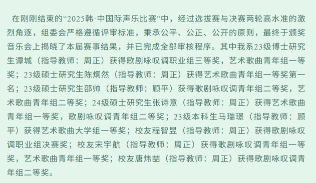 喜报 | 声歌系在“2025韩·中国际声乐比赛”中喜获佳绩