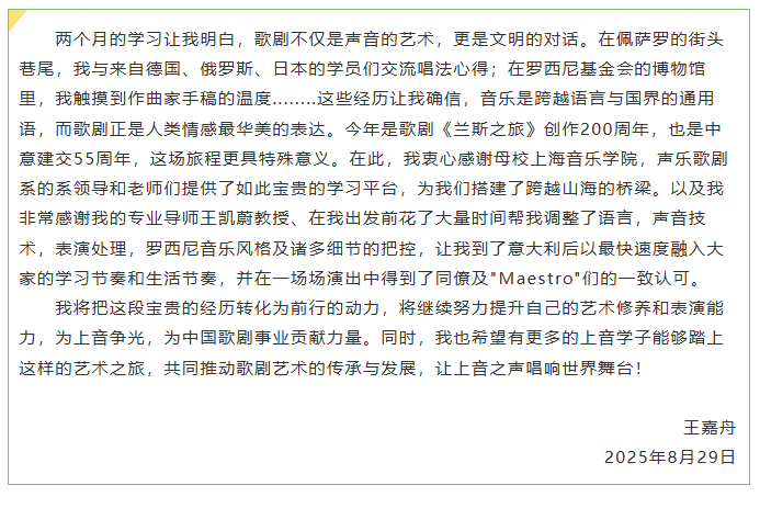 罗西尼歌剧节之旅:beat365英国官方网站声歌系学子王嘉舟的深度分享
