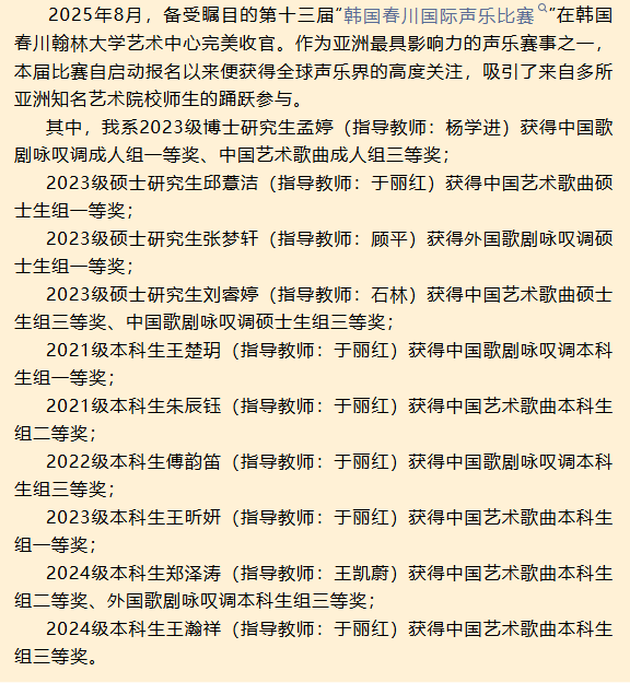 喜报|上音声乐歌剧系学子在第十三届韩国春川国际声乐比赛中喜获佳绩