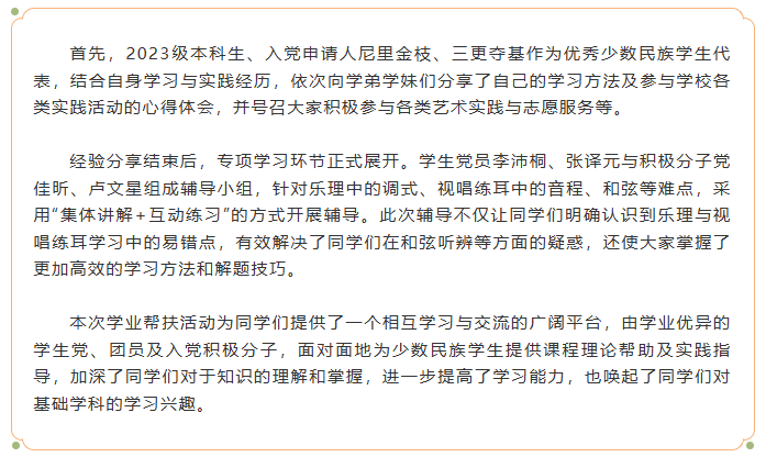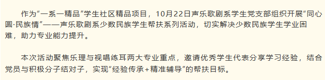 “同心圆·民族情”——声乐歌剧系少数民族学生帮扶系列活动