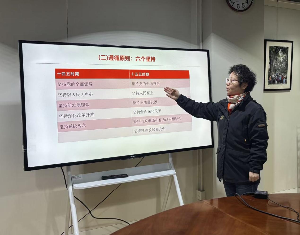 易慧以《奋力开创中国式现代化建设新局面深入学习贯彻党的二十届四中全会精神》为主题讲党课,围绕党的二十届四中全会精神与“十五五”规划,从“规划背景与意义”“经济社会发展指导方针和目标”“各领域重点任务部署”等多个维度展开讲解,加深了大家对全会精神引领下“十五五”规划核心要义的理解。