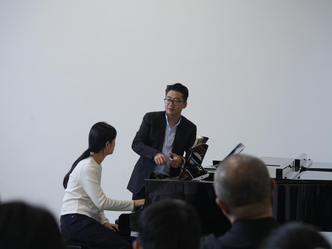 孙颖迪副主任作为上音大中小一贯制培养的优秀专业人才,此行也为浙艺学子带来了一场生动的大师课。教学中,他聚焦于“技术服务音乐”的核心理念,通过细致剖析与精准示范,引导学生思考如何通过触键与肢体语言实现理想的音色,从而准确塑造音乐形象、传递作品内涵。孙老师结合自身丰富的艺术实践经验,为学生们解答了专业学习中的诸多困惑,其充满热忱的教学风采赢得了在场师生的高度赞誉。