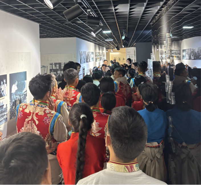 在第二展厅,一块记录着上音1956年民族音乐工作的展板前,师生们驻足良久。当听到著名声乐教育家王品素教授悉心培养藏族歌唱家才旦卓玛的感人故事时,在场的果洛学子们深受触动,自发地报以热烈掌声,向老一辈艺术家的敬业精神致以崇高敬意。