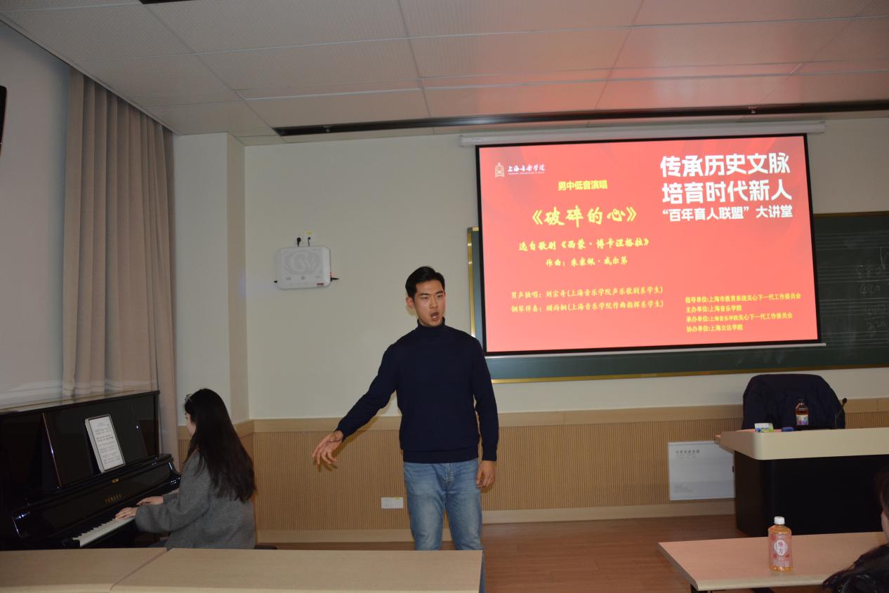 讲座尾声,特邀上音声歌系、作曲指挥系学生带来现场表演,歌剧《西蒙・博卡涅格拉》选段《破碎的心》(作曲:朱塞佩・威尔第)。