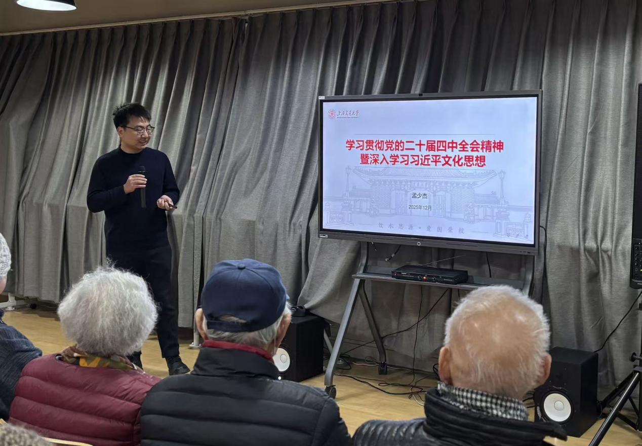 为深入学习贯彻党的二十届四中全会精神,深刻领会习近平文化思想的丰富内涵与实践要求,进一步凝聚离退休老同志的思想共识与奋进力量,2025年12月4日上午,由离退休党委、离退休工作处组织专题讲座,邀请上海交通大学马克思主义学院助理教授、清华大学哲学博士孟少杰主讲《学习贯彻党的二十届四中全会精神暨深入学习习近平文化思想》。老同志们怀着饱满的学习热情参加活动,共同感受思想伟力,汲取精神滋养。活动由离退休党委书记、离退休工作处处长易慧主持。