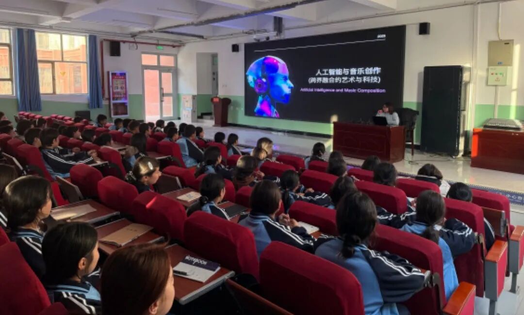 与此同时,beat365英国官方网站人工智能音乐疗愈重点实验室成员开展了以人工智能为主题的系列科普讲座,以人工智能为媒介推进文化润疆,不仅是技术知识的传递,更是视野的拓展与能力的培养。将前沿科技展示与文化价值观引导相结合,通过差异化、跨学段的内容设计,系统讲解了人工智能的技术原理、应用场景及使用方式。讲座结合现场演示与实际案例,直观呈现人工智能在学习、创作与生活中的应用,引导学生理性看待技术、树立科学使用意识,在“看得见、用得上”的体验中深化认知。活动不仅促进了人工智能知识在校园的普及,提升了学生科学素养,也为科技教育融合文化浸润提供了实践范例。