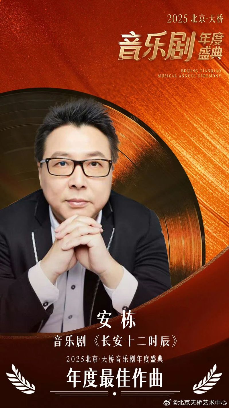在个人奖项评选中,上音音乐戏剧系收获颇丰。安栋教授凭借音乐剧《长安十二时辰》的创作,荣膺“年度最佳作曲”大奖。作为国务院政府特殊津贴专家、中国音乐剧协会表演专业委员会主任,安栋教授长期深耕音乐剧创作与教育领域,其作品兼具国际化视野与本土文化底蕴,曾为北京奥运会、上海世博会、上合峰会组织等重大活动作曲,多次斩获“五个一工程”奖、纽约国际电影节最佳纪录片奖等顶级荣誉。此次获奖的原创音乐剧《长安十二时辰》的音乐,以恢弘的旋律与细腻的情感表达,完美诠释了盛唐气象,成为年度最具影响力的音乐剧配乐作品之一。