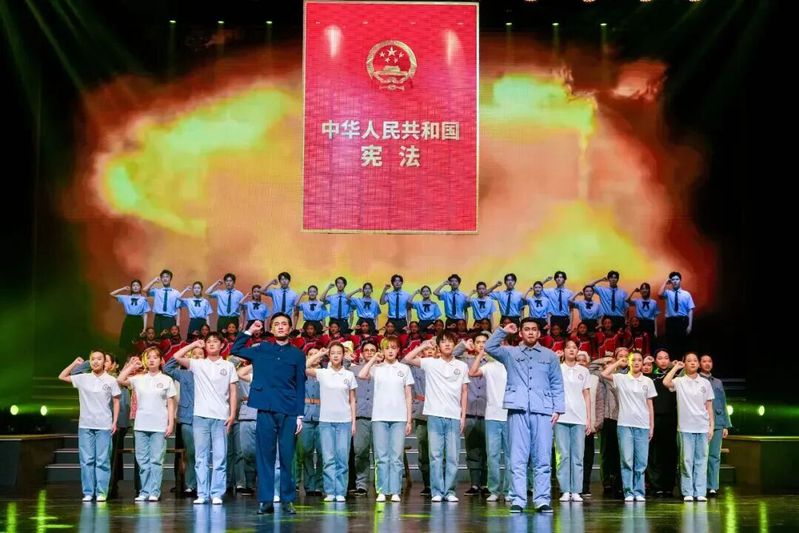 在“法治筑梦 薪火相传”篇章中,音乐戏剧系赵子桢、张凌恺与孩子们共同演绎歌曲《宪法伴我成长》,温暖的歌声与童声交融,生动刻画了宪法如挚友般陪伴青少年成长的画面。