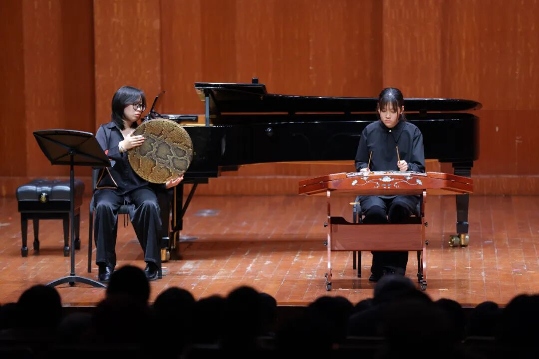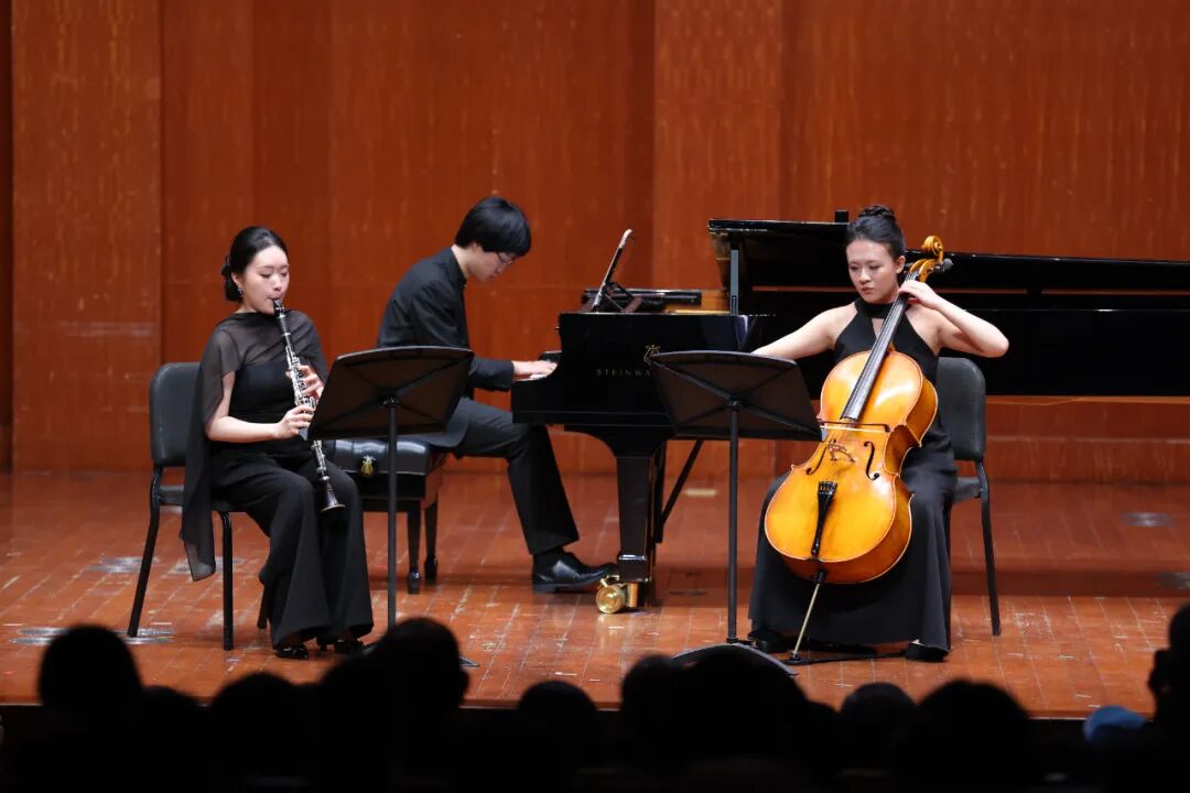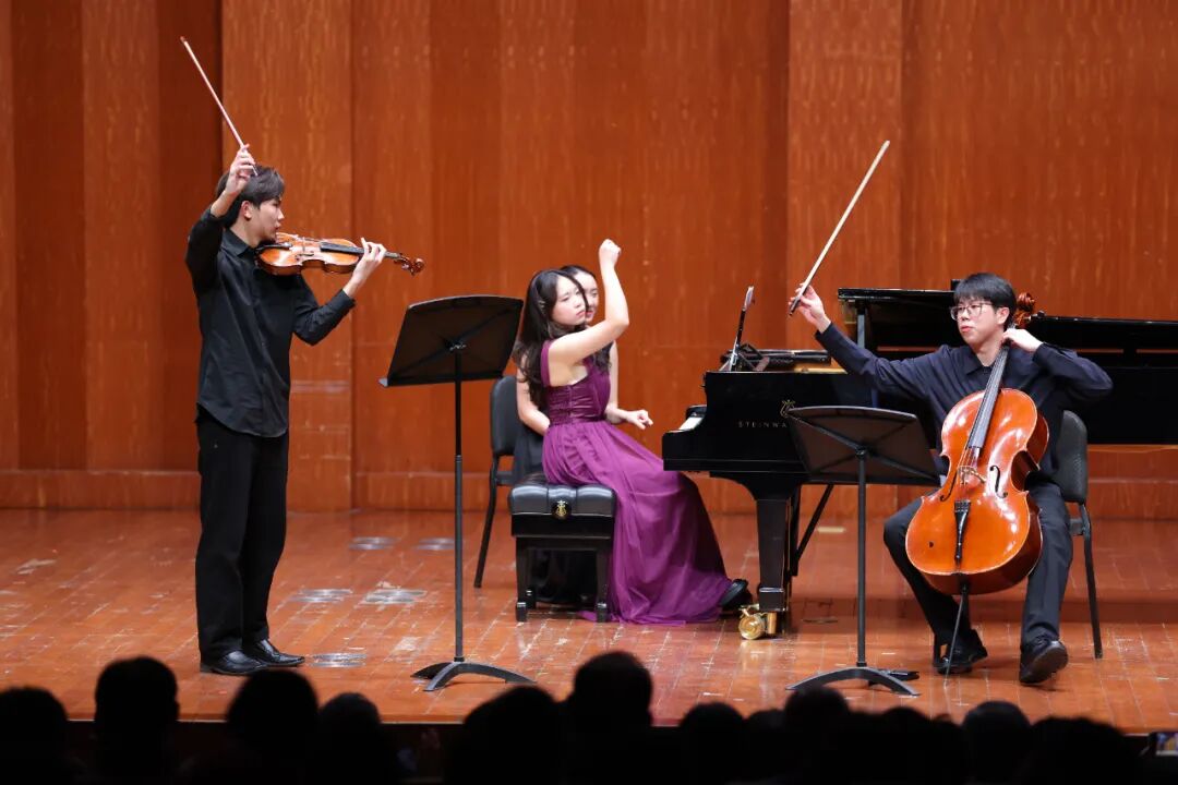 上半场还奏响门德尔松的《D小调钢琴三重奏》、勃拉姆斯的《A小调三重奏》等西洋经典曲目,以严谨的结构与饱满的情感,展现了古典音乐的永恒魅力。值得一提的是,作品《塞尔达传说》组曲与《云舒》均出自上音国际学生之手,将传统乐器与现代创作理念巧妙融合,充分展现出上音学生的艺术创造力。