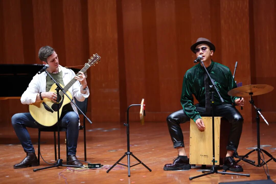 下半场,音乐会氛围持续升温。马来西亚学生演唱的《敢爱敢做》重新点燃全场热情。《第二二胡协奏曲〈西行〉》节奏明快、意境深远;《丝路掠影》《牧羊女》等作品以鲜明的民族特色,为舞台注入青春活力。莫桑比克学生带来的艺术歌曲《梧桐树》以醇厚声线勾勒梧桐挺立的风骨,歌声中蕴含家园之思与岁月积淀。《菊花台》在二胡、大提琴与钢琴的重新编配中,赋予经典流行旋律以室内乐的细腻质感,流转出现代与古典交汇的浓浓诗意。
