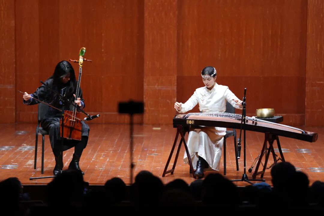 音乐会在气势恢宏的打击乐《云之南》中拉开帷幕,铿锵有力的节庆鼓点,瞬间点燃现场氛围。随后,一系列融合中外特色与经典韵味的曲目精彩上演。歌曲《槐花几时开》《阿扎尔的咏叹调》《别唱,美人》深情款款、直抵人心;马头琴与古筝合奏作品《贤后满都海》、中提琴独奏《春之歌》旋律优美、各具韵味。