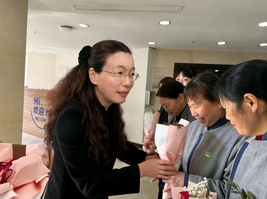 3月6日上午,副院长陈云代表学校,与工会、妇委会一同慰问坚守在物业后勤一线的女职工们。