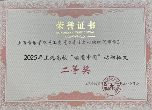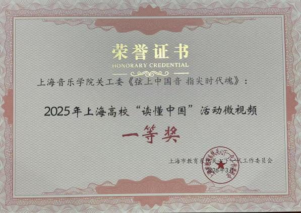 微视频《弦上中国音 指尖时代魂》、征文《以赤子之心映时代华章》分别获得2025年上海高校“读懂中国”活动优秀作品奖一等奖和二等奖。