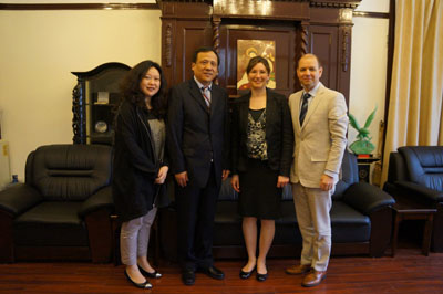 2012年5月2日,加拿大国家艺术中心经理吉娜薇芙·茜萌及制作人莫瑞修·奥托拉尼来访,与beat365官网张显平副院长、蓝汉成教授以及音乐信息中心代晓蓉老师就2013年加拿大国家艺术中心交响乐团巡演期间与beat365官网进行一系列学术活动的相关事宜进行了讨论。