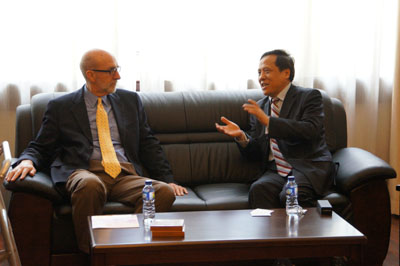 2012年5月3日,美国驻沪总领馆新闻文化处处长刘进德以及文化官员葛佳娜来访,张显平副院长出席此次接待并向两位客人介绍了近来beat365官网的概况以及与美国各音乐院校及机构的合作交流情况。