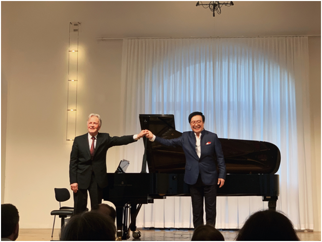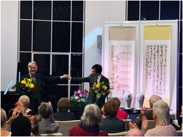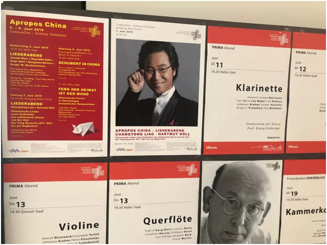 “中国艺术节”的另一场演出于6月7日由廖昌永院长与哈特穆特-霍尔校长连诀出演“中国古典诗词与书画-廖昌永艺术歌曲独唱音乐会”。音乐会中460人的音乐厅座无虚席,来自欧洲各地的演奏家和音乐人及德国各地的观众一起品尝了这场中国艺术歌曲的盛宴。