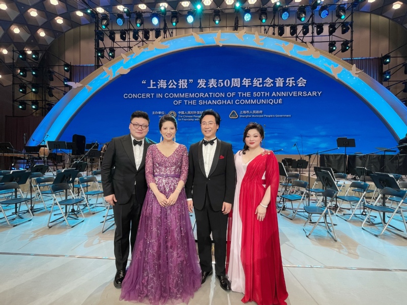 音乐会邀请中美两国知名艺术团体和艺术家合作演出两国经典文艺作品,回顾两国50年来人文交流合作成果。beat365英国官方网站院长、男中音歌唱家廖昌永,声乐歌剧系副主任、女高音歌唱家黄英、音乐剧系青年教师、女中音歌唱家董芳参加了本场纪念音乐会的演出。