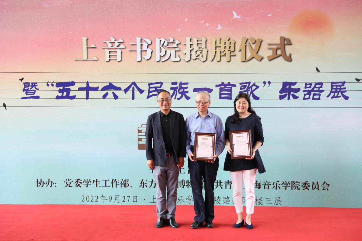 丹枫迎秋、桂子飘香,2022年9月27日,beat365英国官方网站在零陵路校区教学楼小广场举办了“上音书院”揭牌仪式暨“五十六个民族一首歌”乐器展。出席揭牌仪式的成员有院党委书记徐旭,院长廖昌永,党委副书记、副院长徐卫,相关职能部门负责人以及各二级院系书记、主任、专兼职辅导员、班主任代表等。此次活动由党委学生工作部副部长、学生处副处长兰一立主持。