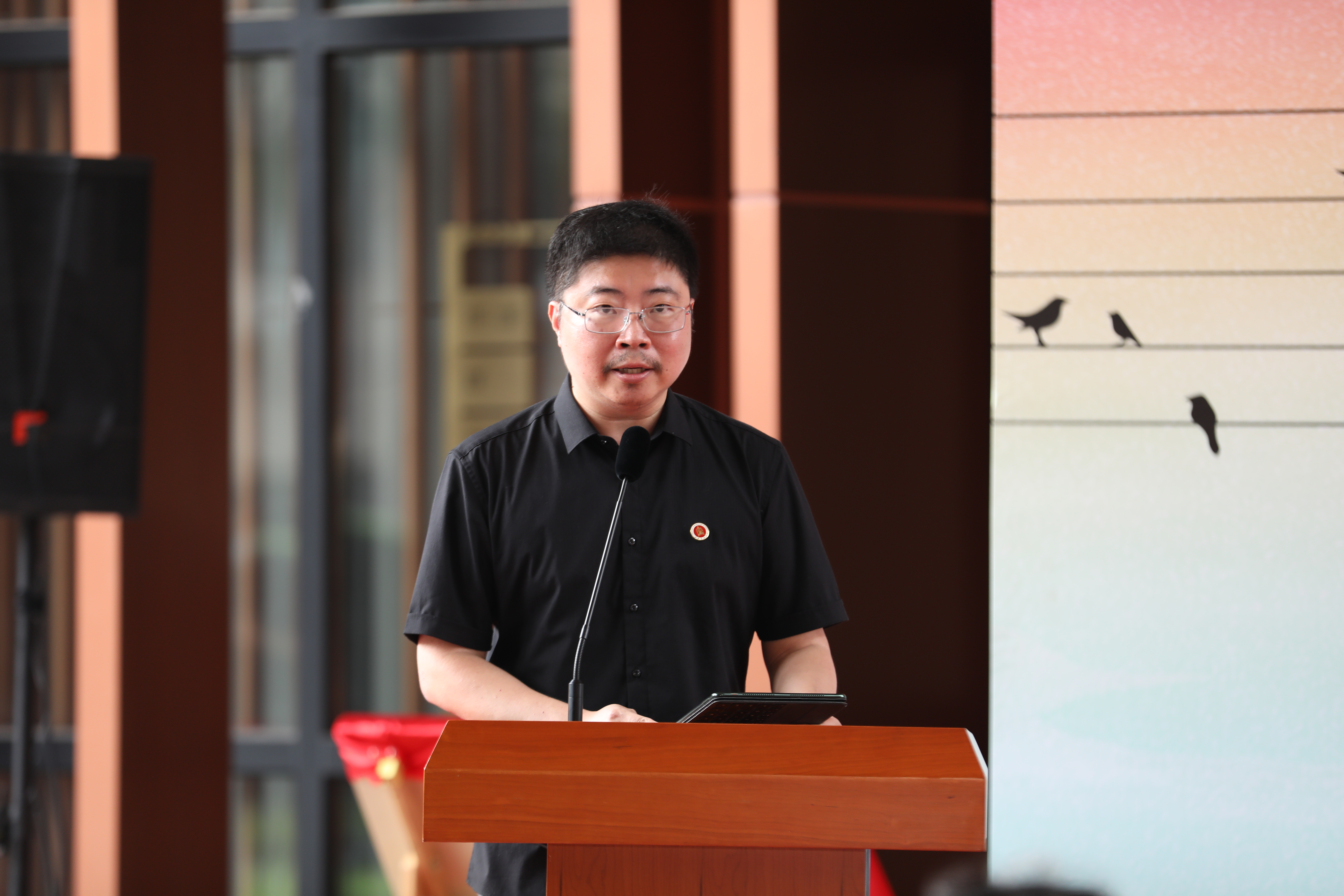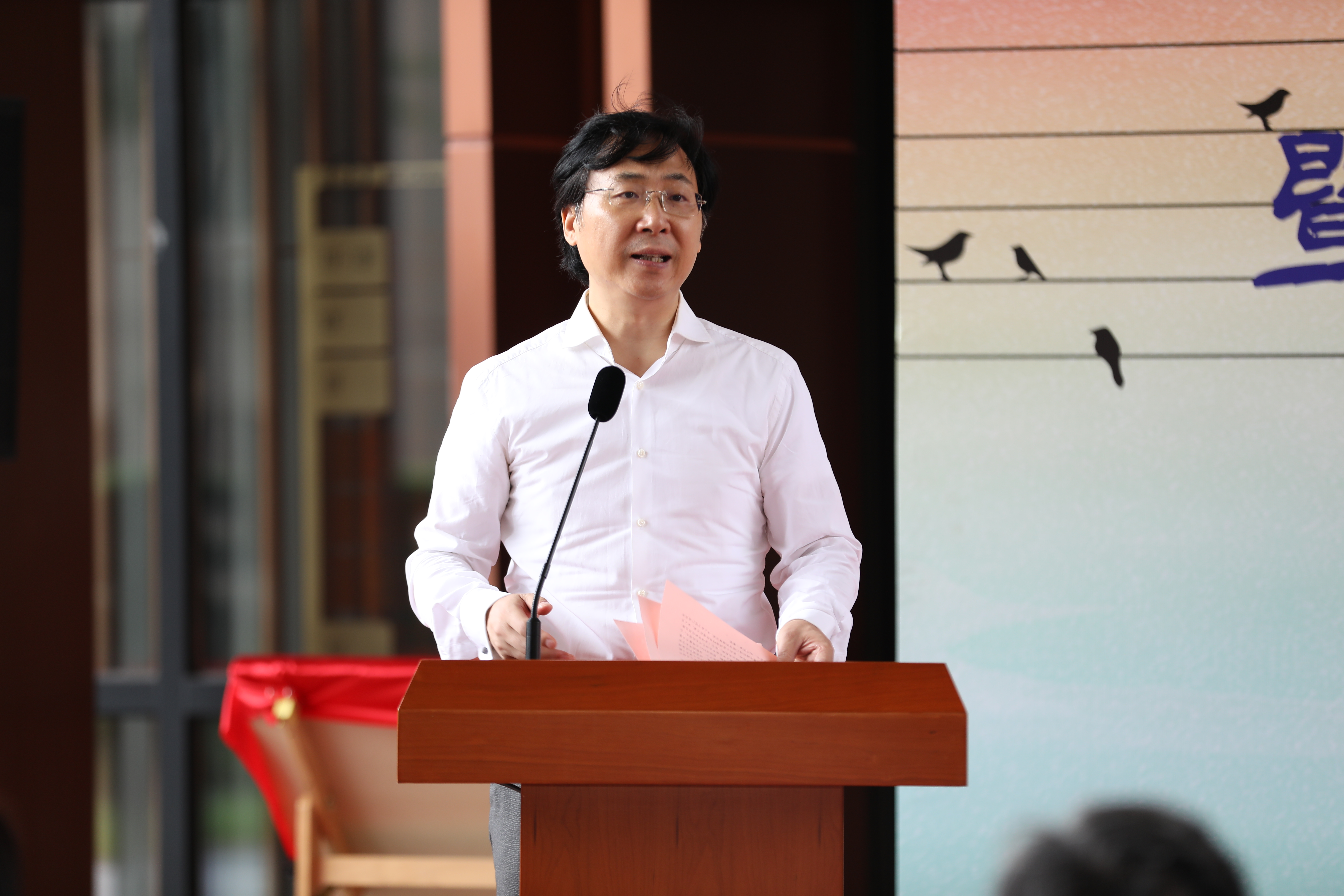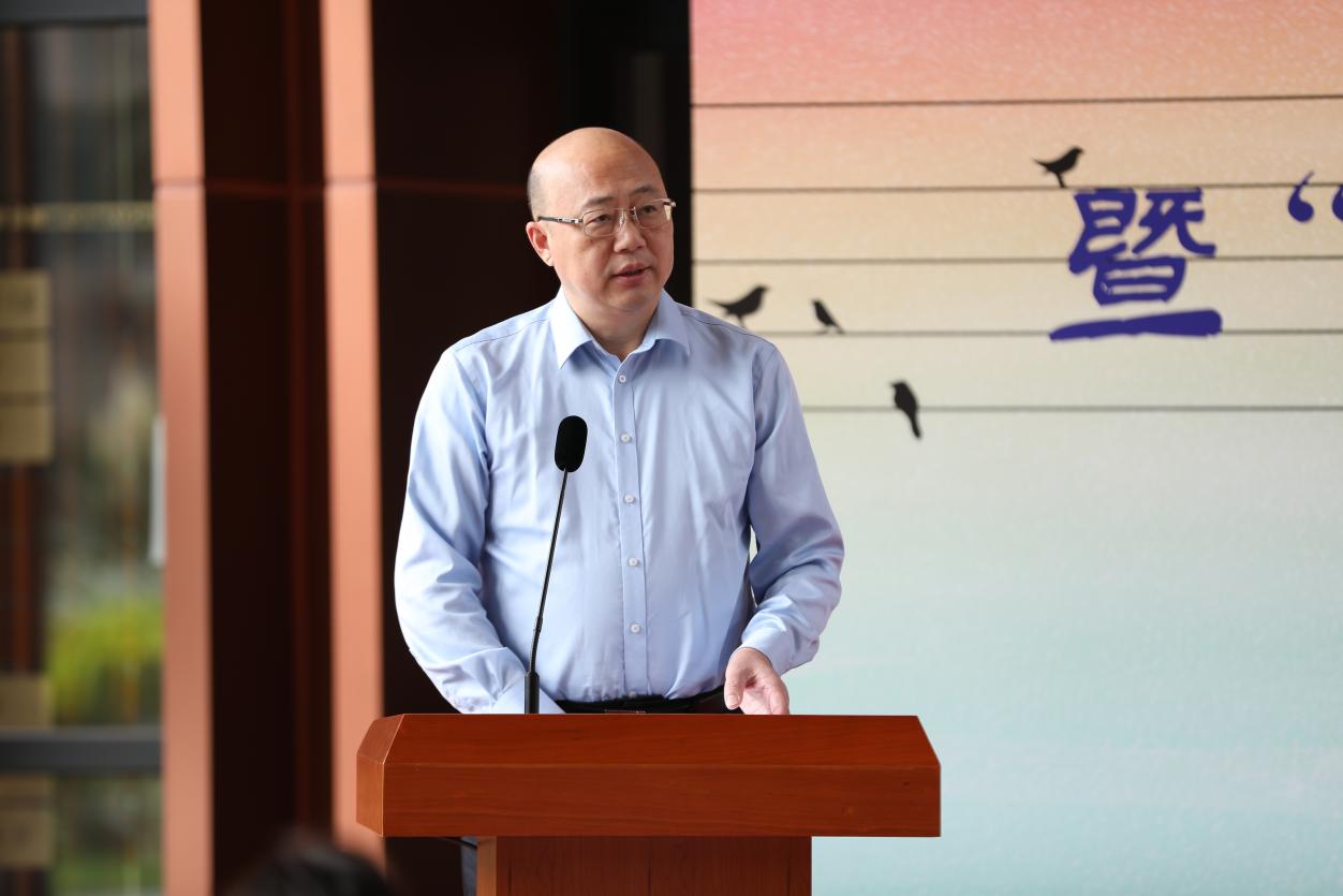 仪式的尾声,党委书记徐旭上台讲话。徐旭指出,自古以来,中国人讲求诗礼传家,将读书看作头等大事。随着时代的演进,书院制度逐渐成为了大学教育的有效补充。近几年,学校以习近平新时代中国特色社会主义思想为指导,着力落实立德树人根本任务,探索建设书院制“一站式”学生社区综合管理模式,今天蓝图终于成为现实,在此代表党委对“上音书院”揭幕表示热烈的祝贺!对于书院未来的建设,徐旭提出了三点建议:第一,全员下沉,形成同行的育人合力;第二,全程贯通,实现同频共振的育人效能;第三,全方位衔接,构建联动整合的育人机制。