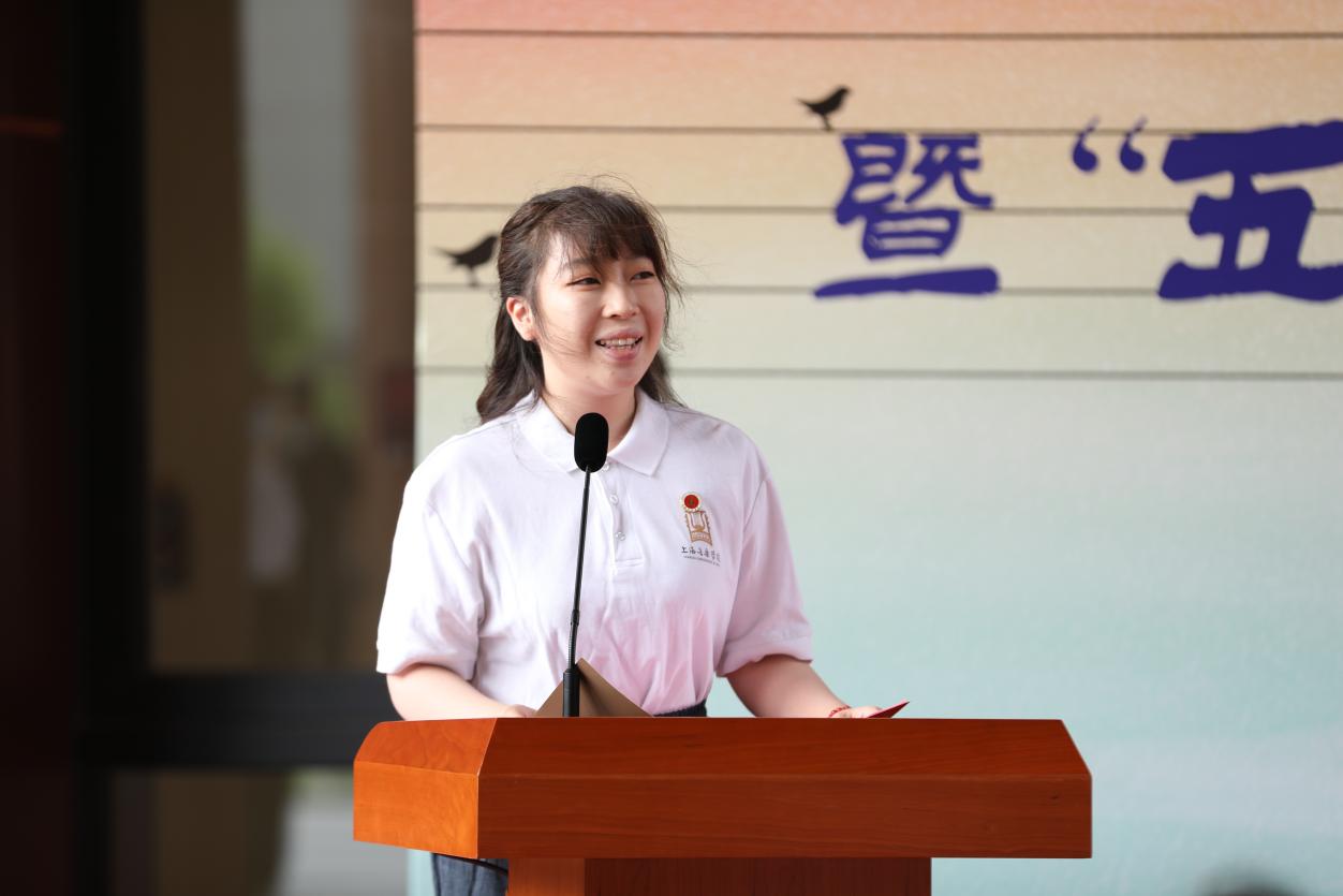 管弦系2019级本科生孙正天竹作为学生代表发言,她说“作为学生骨干代表,我将发挥先锋模范作用,勤学修德,心怀感恩之心,充分利用上音书院多维度育人共享、共建平台,积极参与。将小我融入学校发展之中,在书院中不断提升实践能力、创新能力,传承上音精神,精研专业,探索新领域,发现更多可能。用我们的力量助力伟大复兴中国梦,交出一份音乐人的青春答卷。”