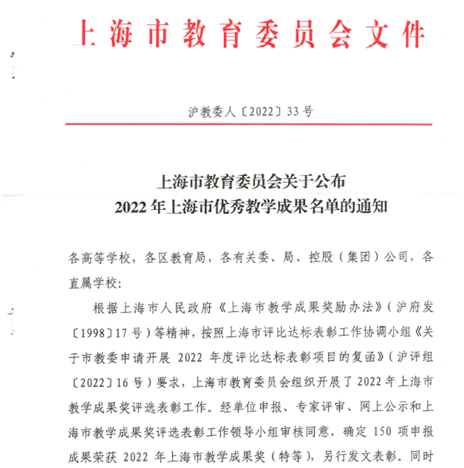 2022年上海市优秀教学成果奖beat365英国官方网站获奖名单