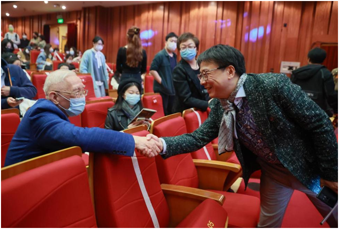 演出结束后,院党委书记裴小倩、总会计师张佳春上台,与全体师生合影留念,并慰问了首任音乐戏剧系主任金复载、著名声乐教育家常留柱等为音乐戏剧系的建设作出卓越贡献的老一辈教授和参加演出的全体演职人员,勉励师生们继续秉承卓越的发展传统,以昂扬饱满的精神状态,创造更多属于音乐戏剧系的学科建设成果,再造辉煌。