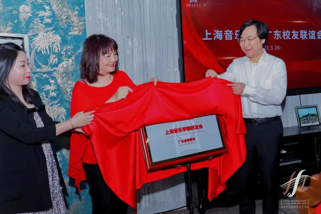 活动最后,廖昌永与校友代表徐霞、叶思思共同为上海音乐学院广东校友联络处揭牌。上海音乐学院广东校友联络处的成立,将进一步加强母校与粤港澳大湾区校友之间的纽带,搭建起校友与校友之间、校友与学院之间的桥梁。