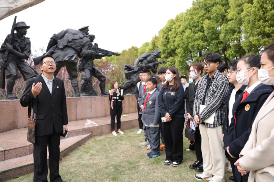 上音复旦师生一行还参观了陵园内碑林遗址区、烈士墓区、就义区,马院教师董少校逐一为大家讲解英烈故事,开展行走的思政课堂。
