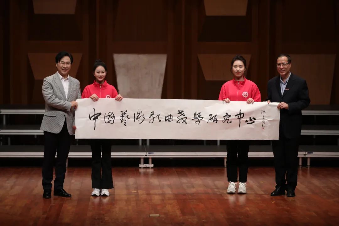 在与会人员的共同见证下,廖昌永和王长平分别代表两校共同为“中国艺术歌曲教学研究中心”揭牌。福建省书法家协会主席陈奋武先生为中心题词。
