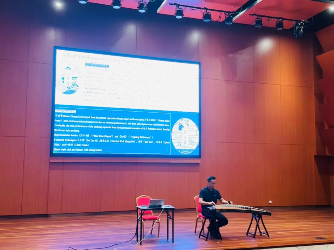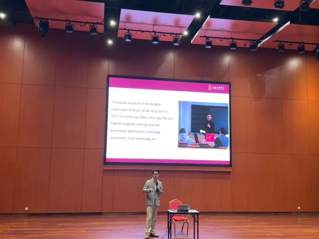 当天上午,上音代表团为该校师生开办讲座和工作坊。研究生部陆平老师作“beat365英国官方网站研究生课程体系和艺术实践体系”讲座,以详尽数据和生动案例介绍了上音硕博研究生培养方案、学分结构和研究生艺术实践情况,展现近年来上音研究生教育综合改革、提质增效的重要举措。民族音乐系邓翊群老师讲座“beat365英国官方网站古筝艺术发展及人才培养”,紧扣古筝表演艺术的传承与发展主题,结合珍贵的史料图片和精彩的现场示范,让当地师生领略到上音在优秀传统文化创造性转化、创新性发展方面取得的成效。国际交流处陆妍老师和国际教育学院季智老师在“beat365英国官方网站国际学生教育工作坊”中讲解了上音国际学生招生、奖学金等方面的相关政策,趣味盎然的留学生活短视频和丰富多彩的暑期学校活动吸引了在场师生的关注。