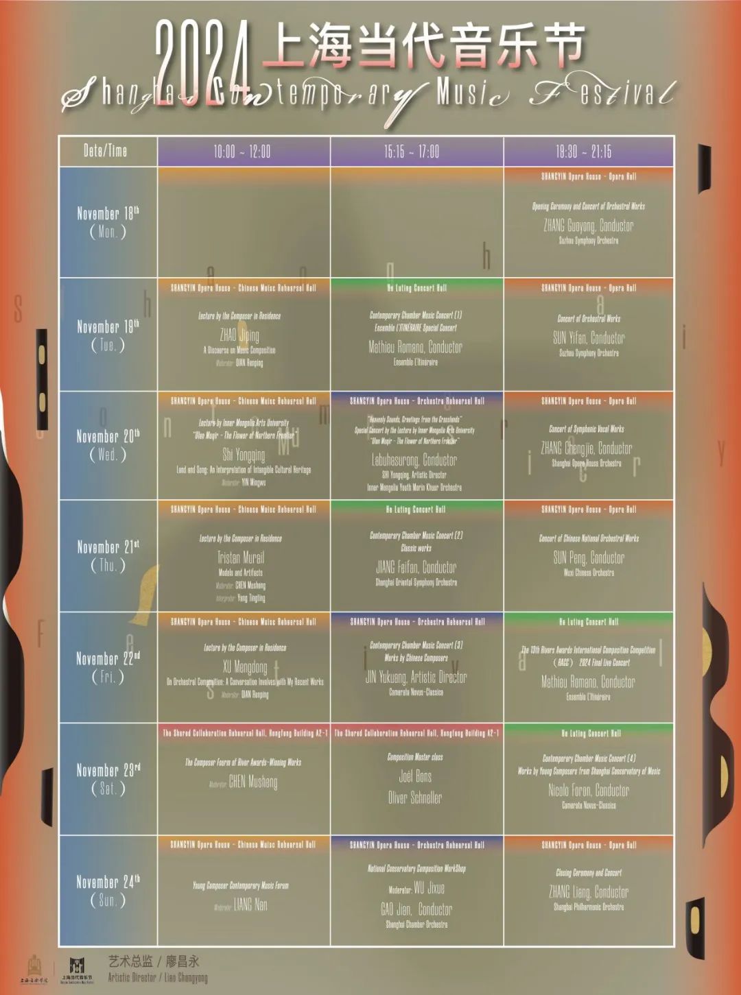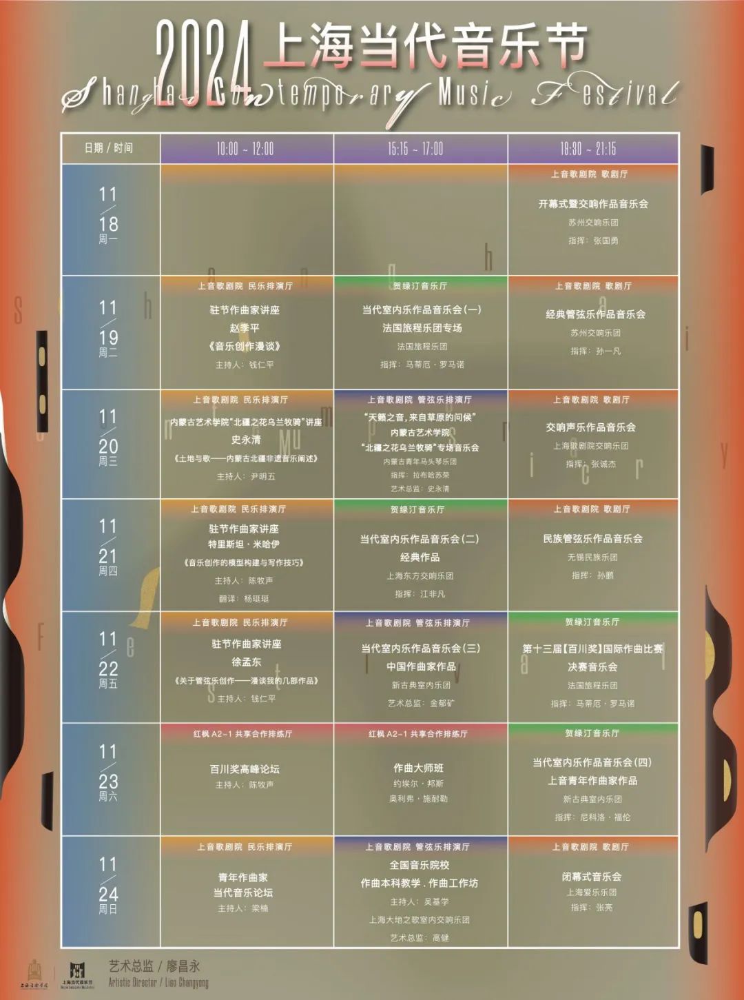 *11月18日、19日、20日、21日、24日晚音乐会将对外售票,讲座及工作坊面向社会招募观众~详情请关注上音演出小程序及上音票务公众号。