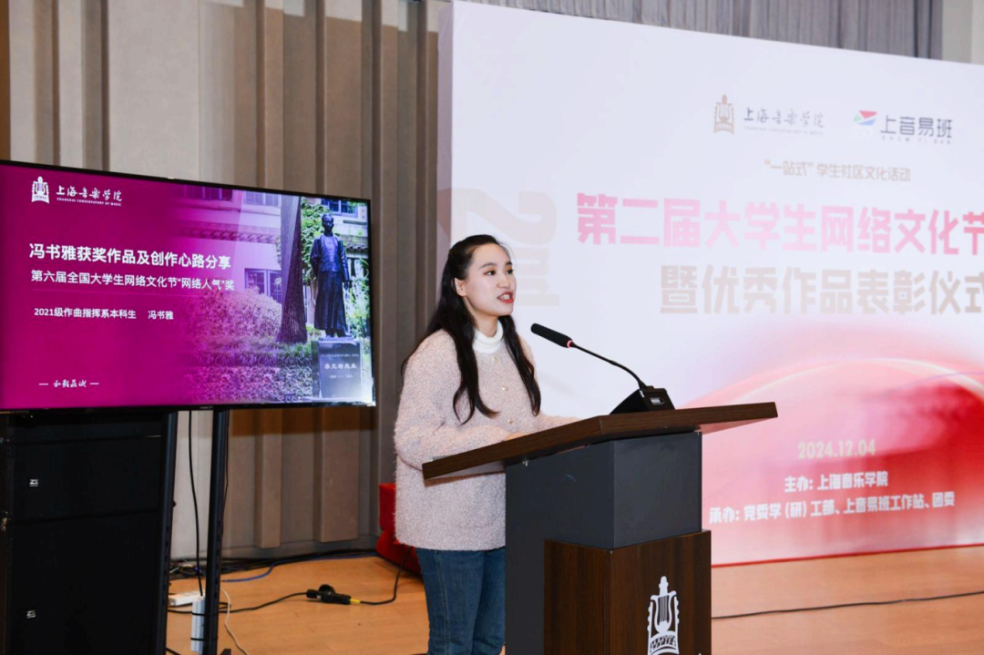 上音易班站学生代表宣读《文明上网倡议书》,从依法上网、文明上网、安全上网、绿色上网四个方面,呼吁上音学子用好网络创作和传播优秀作品,让互联网成为青年学生真实便捷的知识库、温暖可靠的朋友圈、文明理性的舆论场。