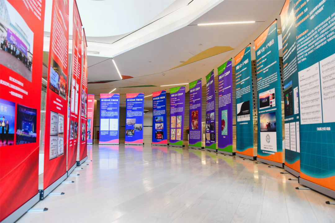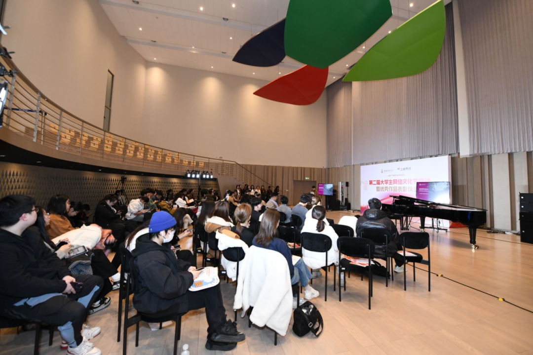 活动开始前,师生共同参观上音网络育人品牌及获奖作品展览,由上音易班工作站理论宣讲员负责讲解。“音梦相承·原创旋律”以原创旋律展现学子音乐才华与创新力;“光影绘梦·摄影盛宴”用光影结构呈现镜头里的多元风貌;“阿卡贝拉颂·天籁改编”以流行诠释传承创新之道;“爱满人间·公益心声”借网络传播爱心,彰显学子担当;“网聚人心·人气甄选”集网络人气佳作,彰显学生作品的广泛影响力与参与度。