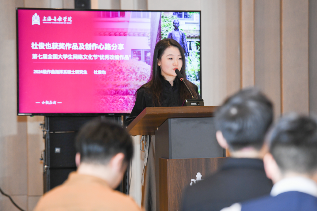 活动现场展示了上音国赛作品获奖中具有代表性的3首原创校园歌曲,同时创作者结合作品的创作背景、创作历程、创作启示等与师生进行交流。