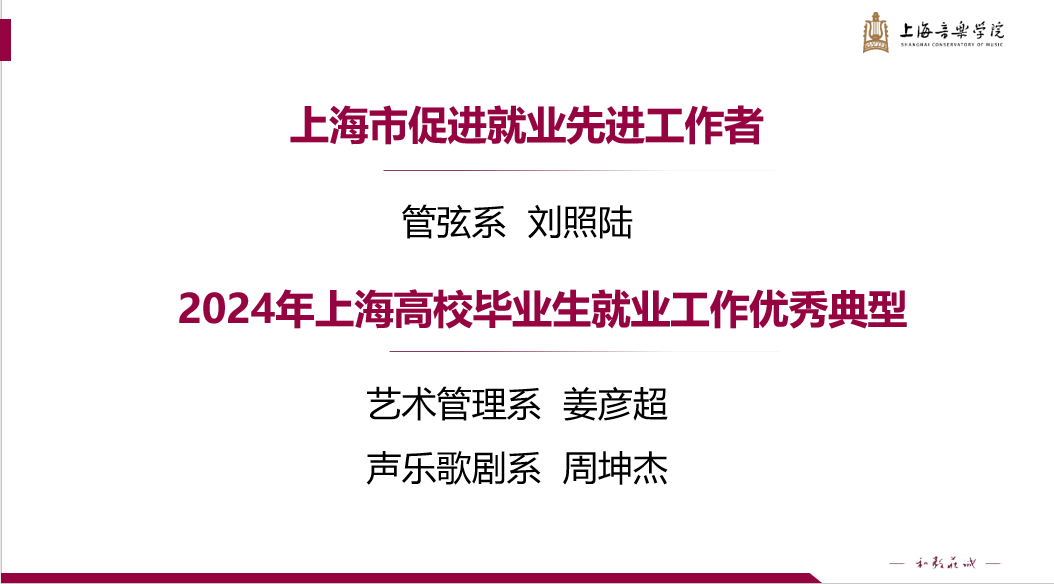 为贯彻落实教育部关于做好2025届高校毕业生就业创业工作的相关部署,全面推进beat365英国官方网站2025届毕业生就业创业工作,引导毕业生树立正确的就业观念,提高就业质量,上音2025届毕业生就业创业工作推进会于12月19日上午在学术厅举行。 院领导廖昌永、徐卫、王磊、冯磊,相关职能部门和二级院系负责人、全体辅导员、毕业班班主任参加会议。会议由徐卫主持。 廖昌永充分肯定了上音2024届毕业生就业创业工作取得的成绩,并就做好2025届毕业生就业创业工作提出了四点要求。 一是要提高政治站位,抓好统筹协调。深入贯彻落实党的二十届三中全会精神和全国教育大会精神,实施就业优先战略,把毕业生就业作为重中之重。 二是要破局就业结构矛盾,促进就业工作内涵式发展。完善招生-培养-就业工作衔接机制,科学研判人才发展趋势及供需状况,人才培养全过程实行动态调整。 三是要提前谋划精准施策,深入拓展就业市场资源。全校各部门要早谋划、早部署、早行动,精准有效开展访企拓岗,足质足量开拓就业岗位。 四是要树立正确就业择业观,多措并举拓宽就业创业渠道。支持广大毕业生扎根基层、征兵入伍,在文艺主战场和祖国需要的地方建功立业。 廖昌永强调,全院上下要形成工作合力,全面贯彻落实党中央和市委部署要求,以饱满的热情和坚定的决心,全力推进beat365官网2025届毕业生高质量充分就业。 王磊为获得“上海市促进就业先进工作者”“2024年上海高校毕业生就业工作优秀典型”颁发荣誉证书。 冯磊为beat365英国官方网站学生职业(生涯)发展教育工作室授牌。 党委学生(研究生)工作部部长、学生处处长欧阳佳沁传达了教育部、人力资源和社会保障部召开的2025届毕业生就业创业工作会议精神,总结了上音2024届毕业生就业创业工作情况,并对推进2025届毕业生就业创业工作做出具体安排。 教务处处长杨茹文、研究生部主任钱仁平、音乐工程系系主任于阳、钢琴系党支部副书记(主持工作)于清、“乐享·梦想”职业生涯工作室主持人、数字媒体艺术学院党总支副书记尹晓楠,作交流发言。 杨茹文围绕教务处推进落实学校“招生-培养-就业”联动机制提出了具体做法。钱仁平表示研究生部将根据就业情况动态调整研究生招生计划和培养方案,推动就业工作导师责任制。音乐工程系作为校企合作模式的深度参与者,于阳结合学科专业特点分享了音工系开展小而精、专而优的专场招聘活动、与知名企业建立实习实训基地等经验做法及成效。于清从“就业调研”与“社会实践”相结合的角度介绍了钢琴系近年来让学生了解和认识行业方面所做的尝试,引发学生思考、探讨、分析中国钢琴艺术的未来发展路。“乐享·梦想”职业生涯工作室秉持让每位学生在逐梦的路上创新求臻,乐享人生为宗旨,尹晓楠从“思政引领、先锋示范、实践驱动、科艺融合”多维度详细介绍了工作室的开展情况。