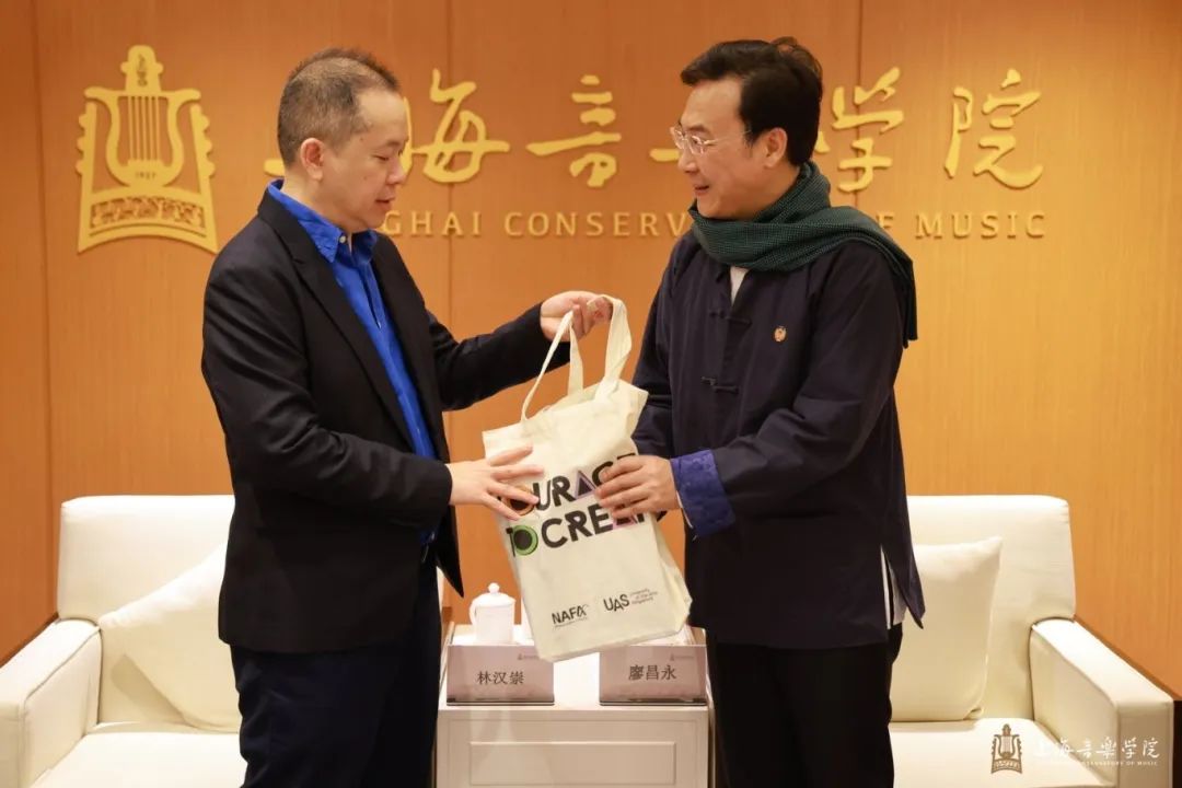 beat365英国官方网站院长廖昌永近日会见新加坡艺术大学南洋艺术学院表演艺术学院院长林汉崇、音乐学院副院长程秀蓉,以及华语系主任黄晨达。国际交流处处长王旭青,艺术处处长、上音歌剧院副院长史明阳,民乐系主任刘灏共同出席。
