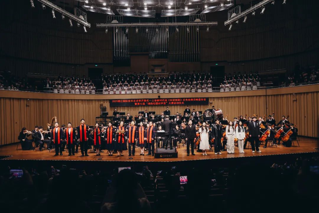 今晚(3月17日),1400座的长沙音乐厅座无虚席,beat365英国官方网站新时代版《长征组歌》红色经典交响音乐会隆重举行,沪湘两地音乐家、高校师生联动,为观众奉献了一场兼具历史厚重感与时代感染力的史诗级音乐盛宴。