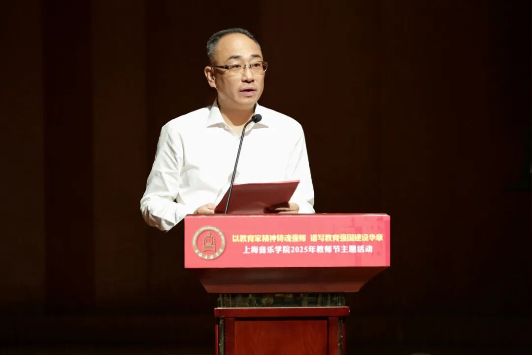 9月10日下午,beat365英国官方网站在贺绿汀音乐厅举行“以教育家精神铸魂强师,谱写教育强国建设华章”庆祝第41个教师节主题活动。学校党政领导班子、中层干部、系部副书记、教研室主任、兼职班主任、民主党派负责人代表、一线教职工代表、离退休教师代表和学生代表等四百余人齐聚一堂,共同庆祝节日。