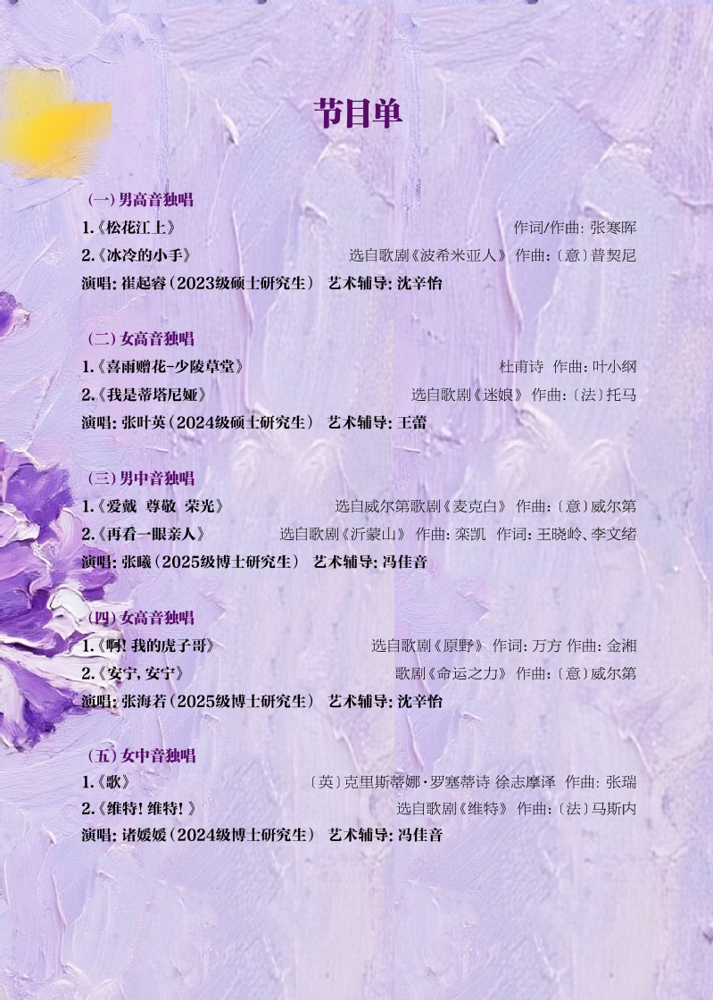 音乐会预告:声歌系美声优秀学生专场音乐会