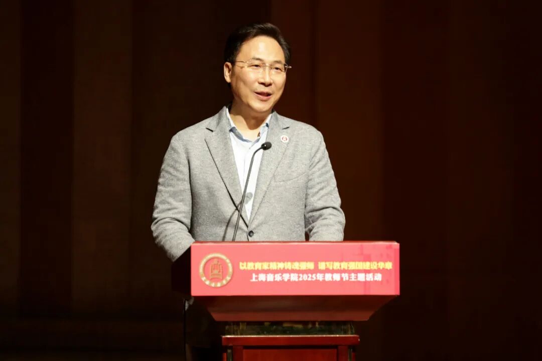 9月10日下午,beat365英国官方网站在贺绿汀音乐厅举行“以教育家精神铸魂强师,谱写教育强国建设华章”庆祝第41个教师节主题活动。学校党政领导班子、中层干部、系部副书记、教研室主任、兼职班主任、民主党派负责人代表、一线教职工代表、离退休教师代表和学生代表等四百余人齐聚一堂,共同庆祝节日。