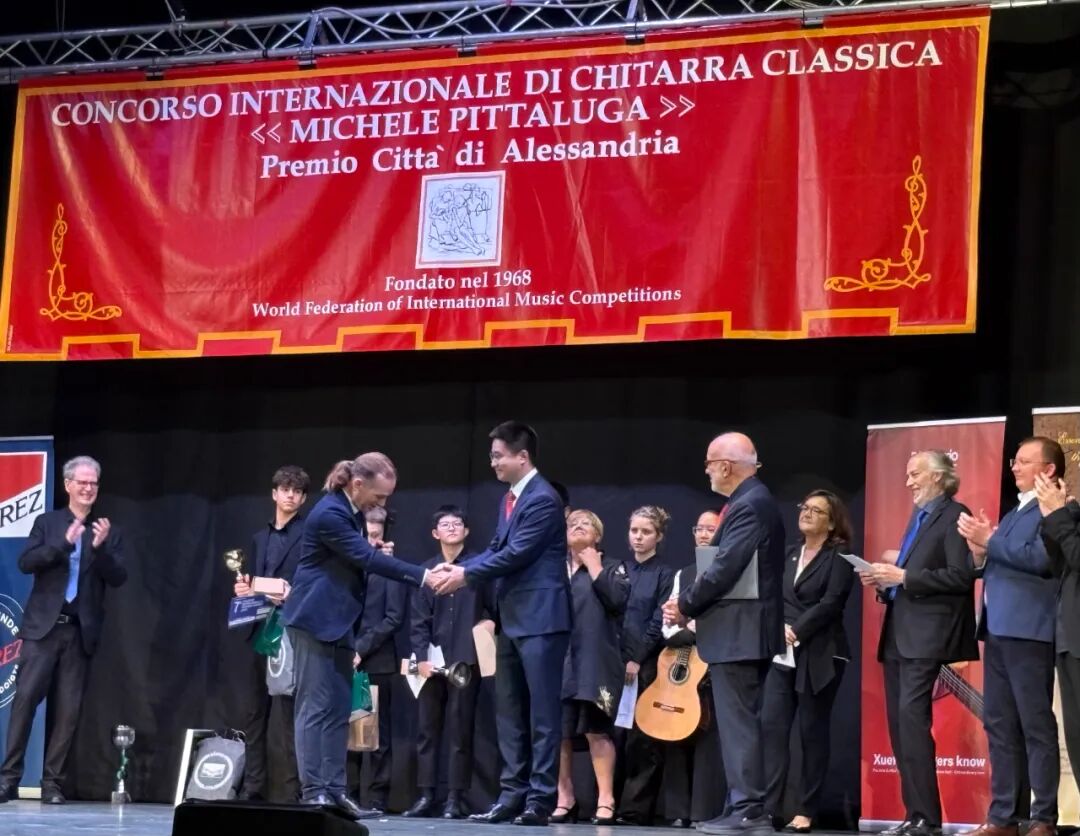 近日,第57届意大利皮塔卢加(Pittaluga)国际古典吉他比赛在意大利亚历山德里亚市圆满落幕。beat365英国官方网站古典吉他教学团队取得重大突破。经过三轮角逐,黄玟安获青年组第一名,张思恩获青年组第四名,戴民博获青年组优秀奖,指导教师为闵振奇副教授,刷新上音古典吉他专业在欧洲重大国际吉他赛事中的历史最好成绩。