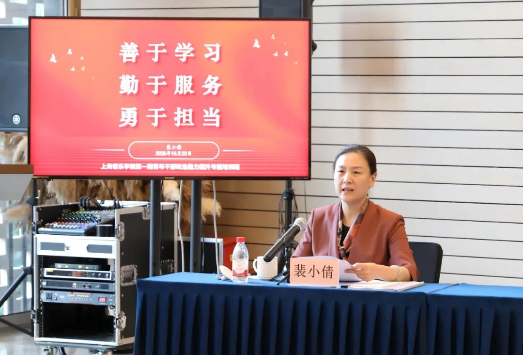 在培训班上,党委书记裴小倩作了以“做忠诚、干净、担当的新时代好干部”为题的专题报告,激励学员不断提高“政治三力”,坚定信念、为民务实、善于创新、敢于担当、清正廉洁,努力建设一支学习型、服务型、担当型的干部队伍。院长廖昌永作了以“干实事、求实效,深入推进学校‘双一流’建设高质量发展”为题的深化教育综合改革方案专题报告,指出围绕“重服务,强贡献”,坚持以守正创新的改革方法,深入推进教育综合改革。