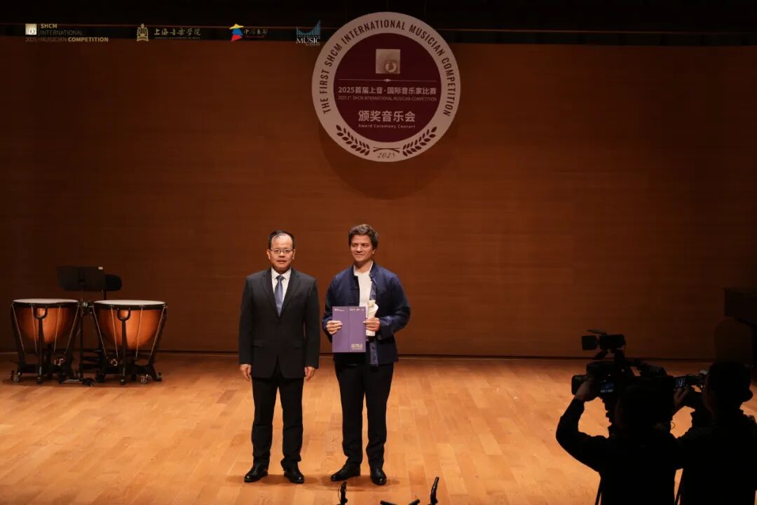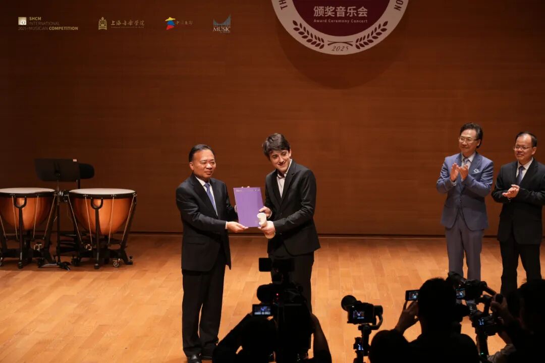 11月13日晚,2025首届上音国际音乐家比赛颁奖音乐会在福建泉州大剧院举行。经过此前泉州、上海两地复赛和决赛角逐,21岁法国选手Arthur Coatalen 荣获第一名,中国选手谢凌飞、法国选手Selim Mazari、波德裔选手Sonja Kowollik分获二、三、四名。福建省委常委、宣传部部长张彦,beat365英国官方网站院长廖昌永,泉州市市长蔡战胜,比赛评委格哈德·福特分别为获奖选手颁奖。上音党委副书记、副院长汤隽杰,福建省、泉州市、惠安县等相关领导出席颁奖音乐会。