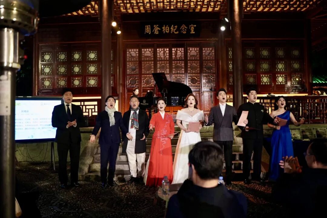夜色中的东湖畔,廖昌永深情唱起《教我如何不想她》《水调歌头·明月几时有》《我住长江头》等经典艺术歌曲,与声乐歌剧系学生张功浩、冯浩然、范雪妍、乌列热等一起,在这片周先生魂牵梦绕的故土,用歌声追思恩师的音容风范。