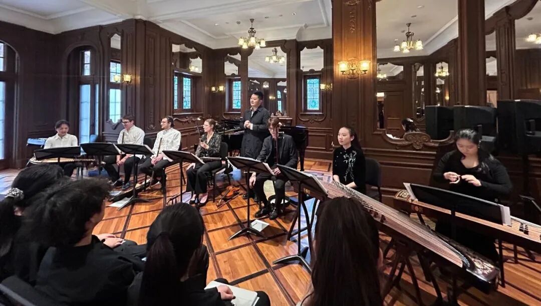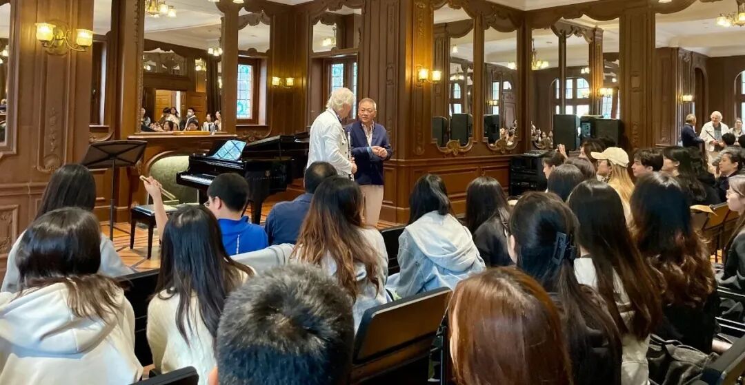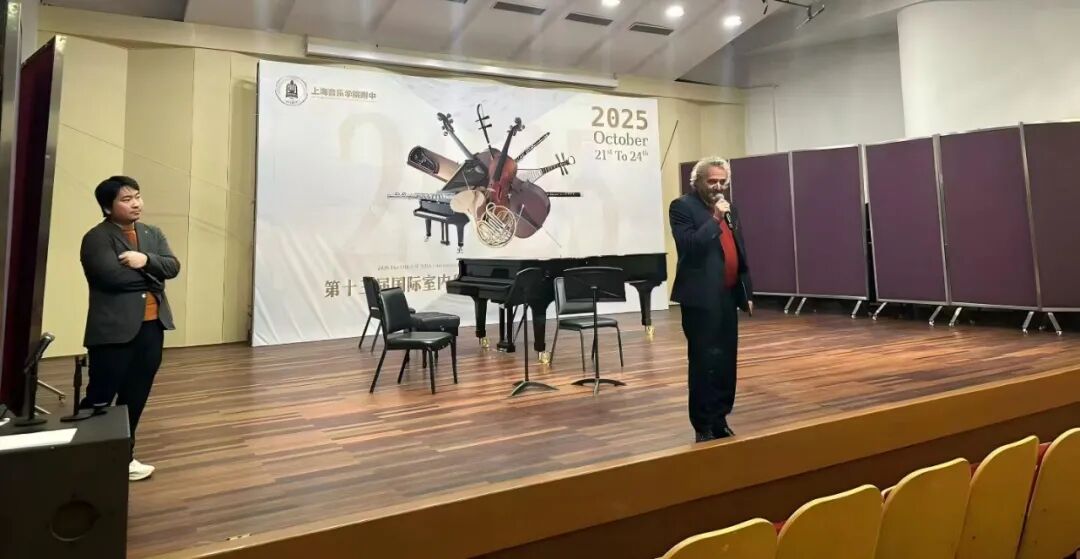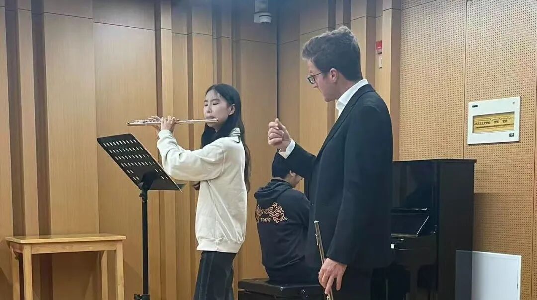 瑞士日内瓦高等音乐学院代表团来访上音,该院中国传统丝竹乐教授俞玲玲携学生与上音民乐系共同举办“传统音乐交流音乐会”,演绎巴洛克乐器重奏、巴斯克地区民乐、经典江南丝竹乐等曲目。音乐会纳入两校共建的“中国音乐海外中心”2025年度活动。该院长笛教授、长笛演奏家雅克·佐恩(Jacques Zoon)于上音城市音乐会客厅举办首次在华大师班。