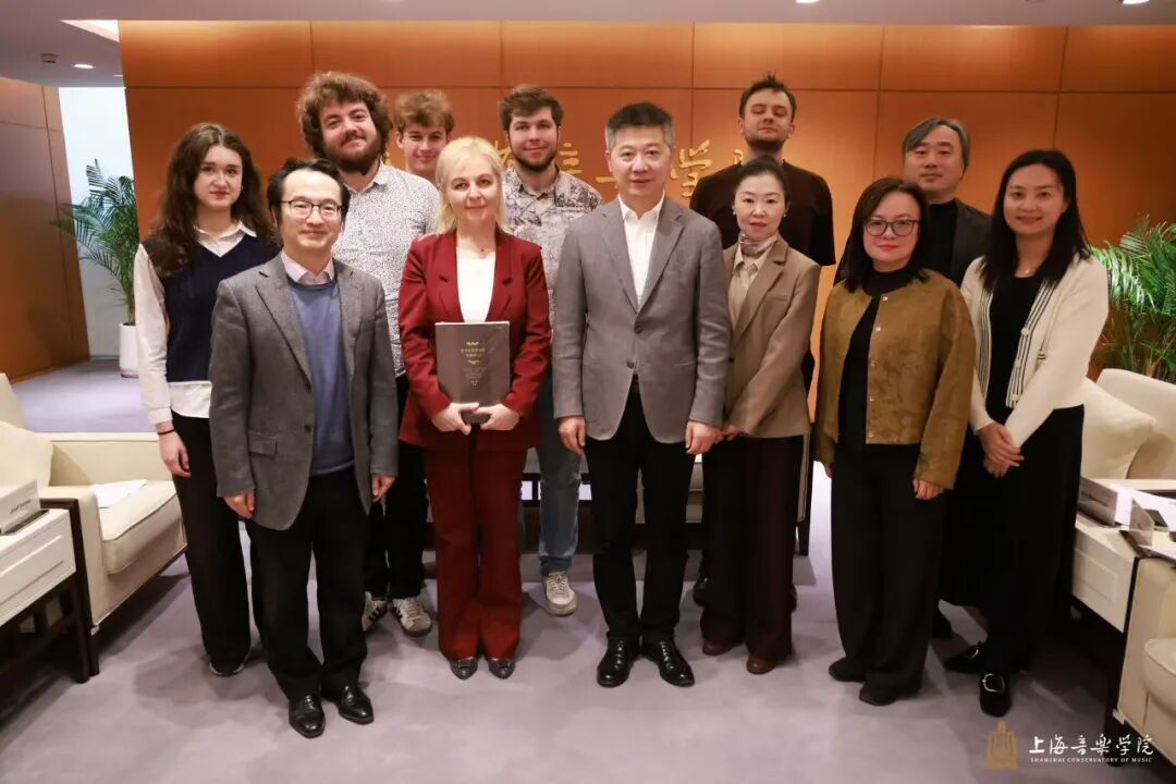 波兰肖邦音乐大学副校长乔安娜·拉夫里诺维奇-尤斯特(Joanna Ławrynowicz-Just)携钢琴五重奏室内乐团来访上音,与副院长冯磊等探讨正式签署两校合作备忘录意向,机制性策划开展每年度交流项目,互派两校师生访问学习,并约定于中波建交80周年之际合作举办有主题、有策划的联合艺术项目。