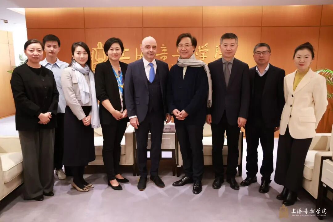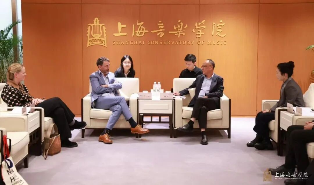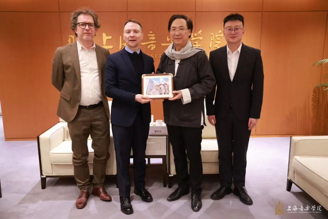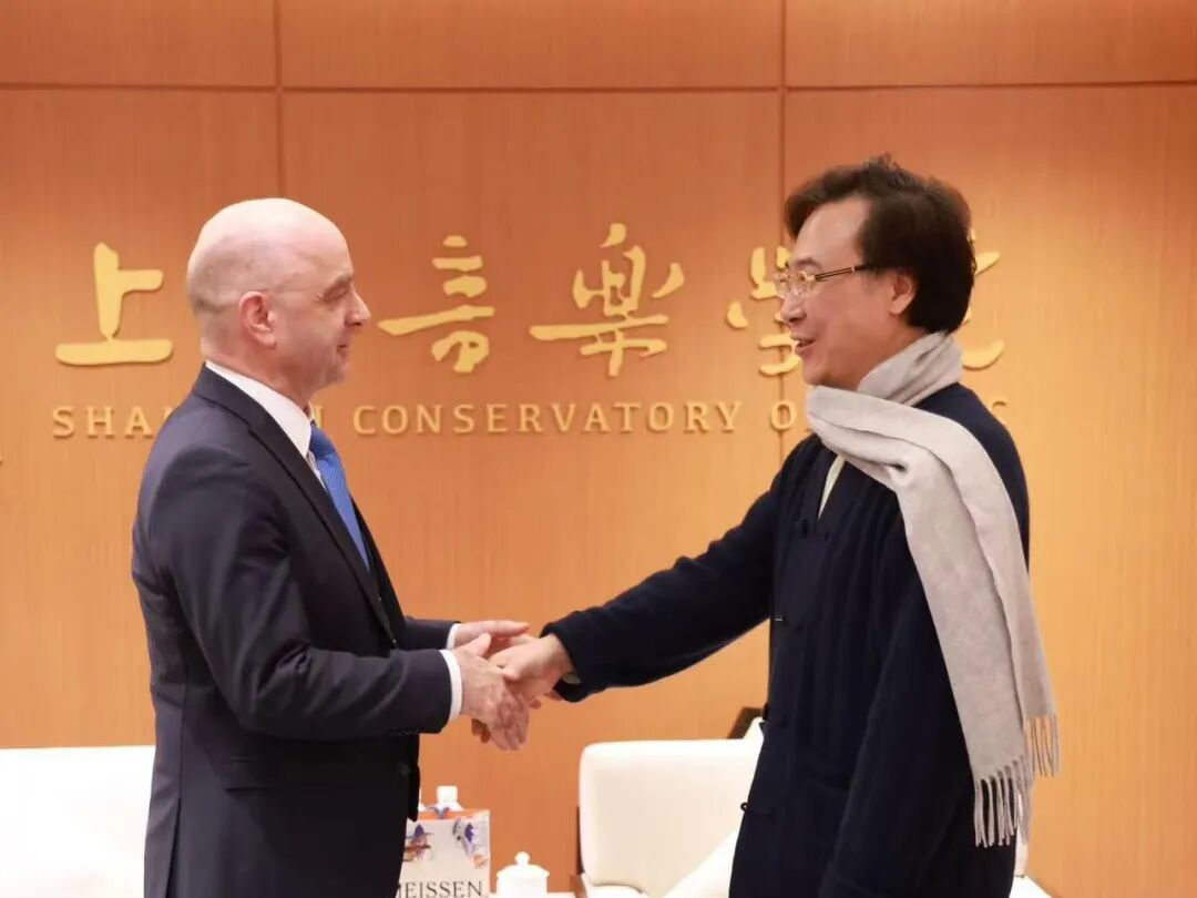 比利时驻沪总领事布凡(Pascal Buffin)、安特卫普皇家音乐学院院长皮特·梅纽(Piet Menu)及安特卫普应用科学与艺术大学中国事务负责人娄雁访问上音,院长廖昌永、副院长汤隽杰参与会见。会谈中,双方旨在建立稳固的校际合作关系,并围绕联合制作、艺术管理人才培养、音乐节赛,以及2026年中比建交55周年等议题商讨了未来合作方向。